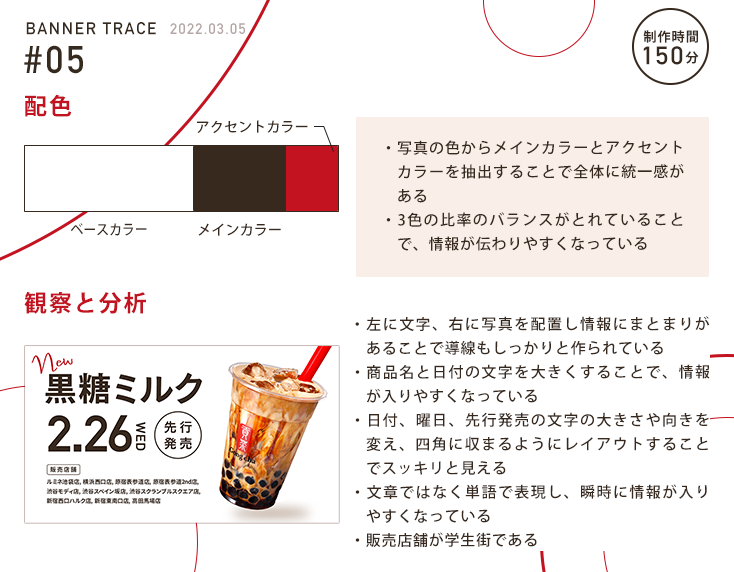 ・バナートレースだけではなく、バナーを観察することでターゲットや目的を分析。そこからデザインの理由を考察しました。