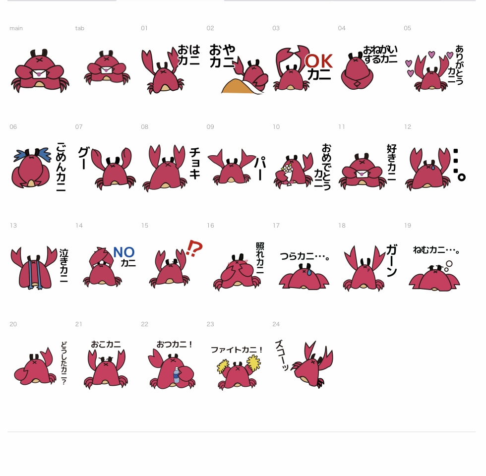 illustratorの練習になるかと思い、カニのLINEスタンプを制作しました。