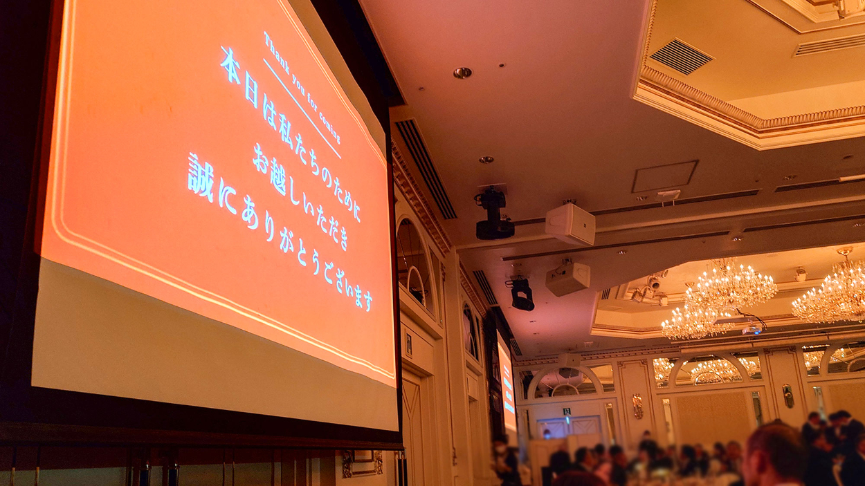 【ご要望】 新郎新婦の自己紹介ムービーの制作。ご列席されるゲストが会社関係が多く年齢層も高めなので、端的でわかりやすく2人の馴れ初めをうまくストーリーにまとめてほしい。品のある凛としたテイストが良い。