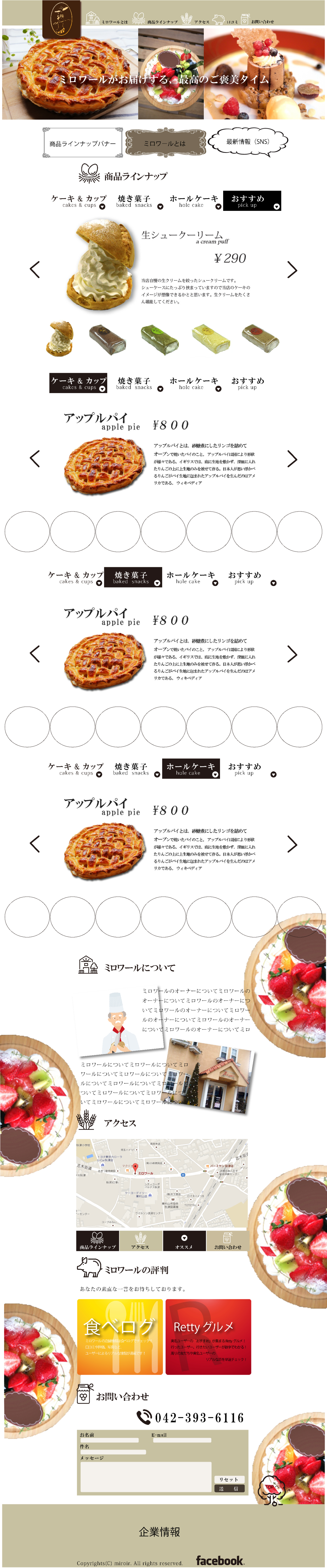 ケーキ屋「ミロワール」Webサイトモックアップ制作