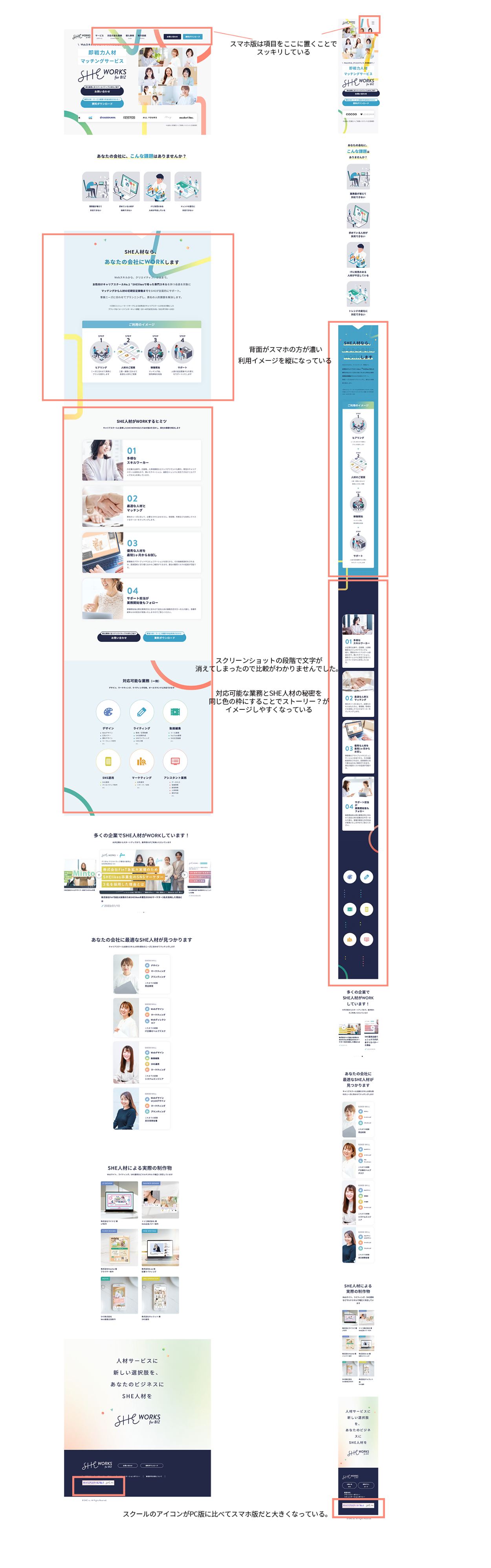 ▶︎PCとスマホでレイアウトが異なる箇所の分析◀︎