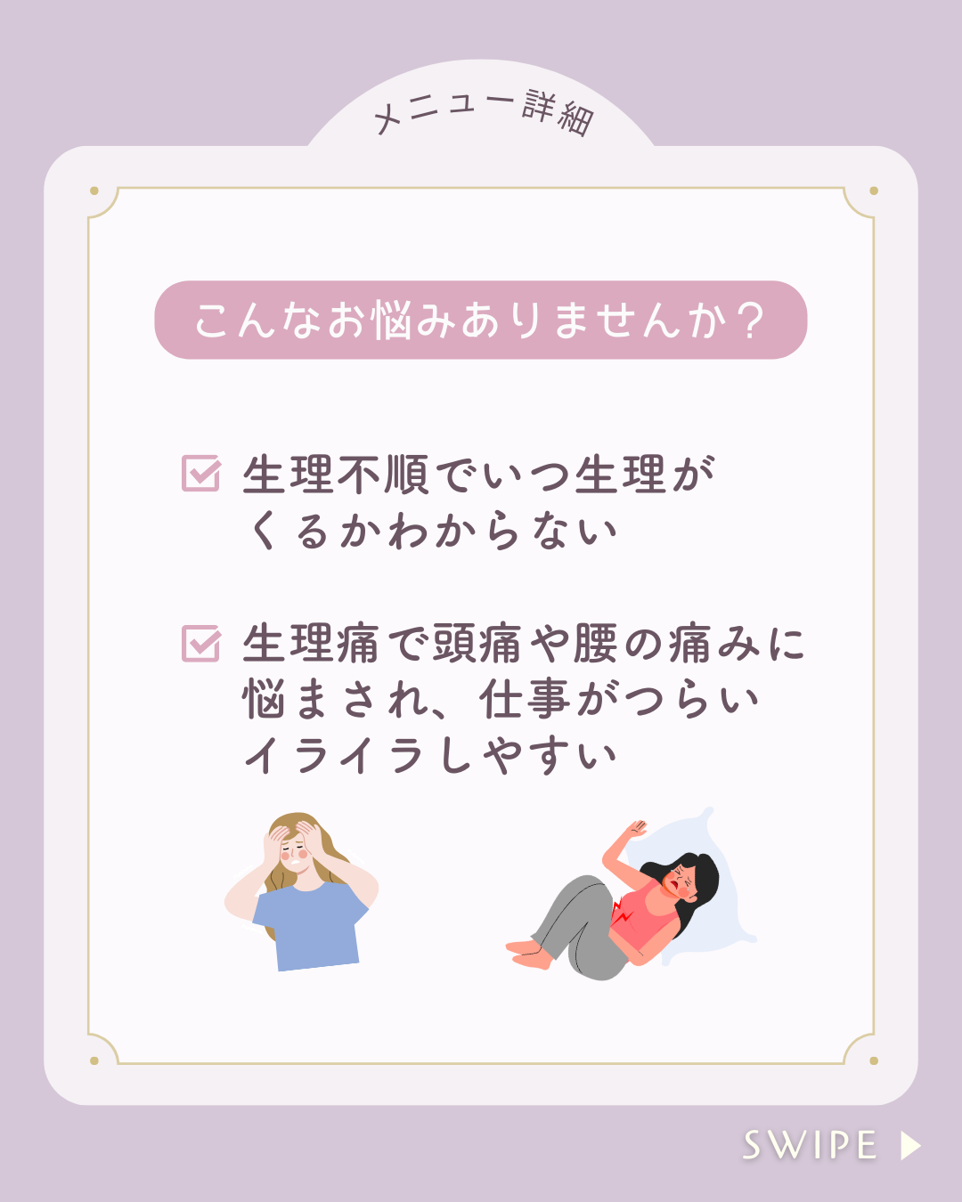 *ターゲット ・30代女性。生理痛や頭痛、肩こりなどに悩んでいる