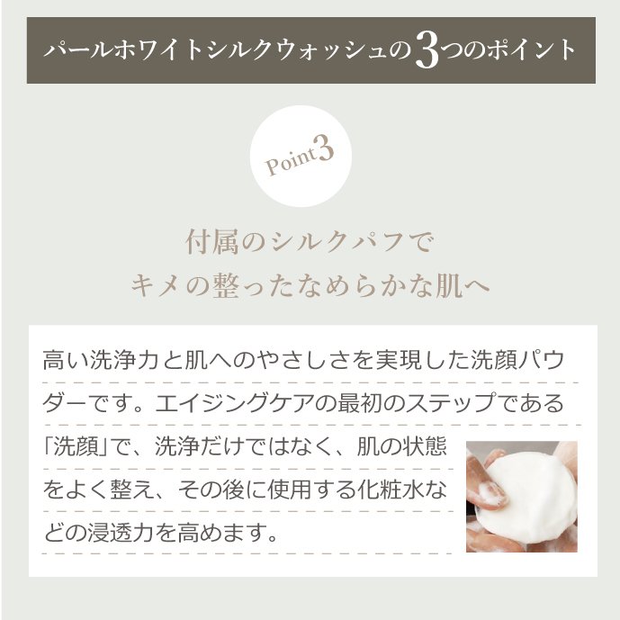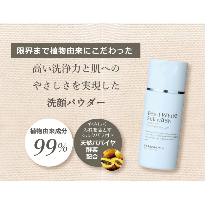 スキンケアアイテム④ kt デザイナー OVERVIEW 商品画像やサムネイル YEAR 2019 パールホワイトシルクウォッシュキャッチコピー:限界まで植物由来にこだわった洗顔パウダー価格帯4,500〜5,000円