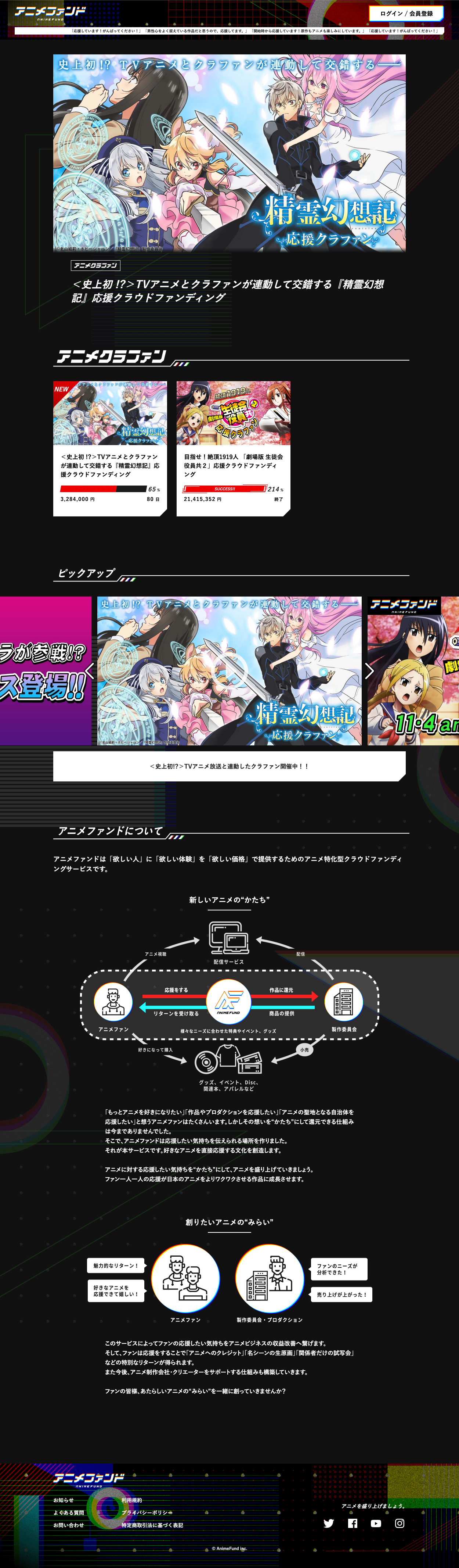 アニメファンド株式会社のブランディングを行いました。 アートディレクターとしてデザインの統括を行いながら、クラウドファンディングサイトのデザイン、映像を担当しました。