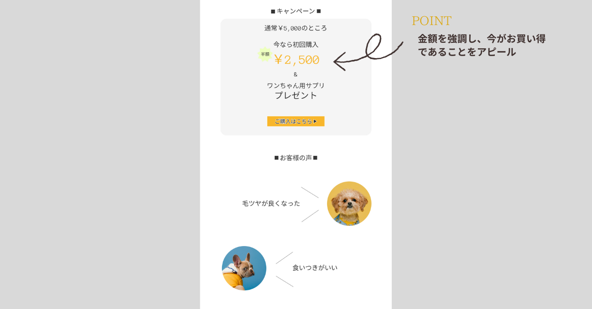 新発売キャンペーンとして初回のみ半額2,500円で販売、サンプルとして当店で人気のワンちゃん用サプリも1つプレゼントします。