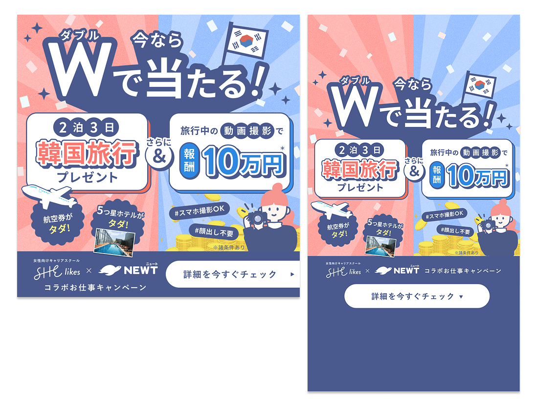- メインコピーも飛び出す勢いのあるキャンペーン訴求らしいデザインにしています