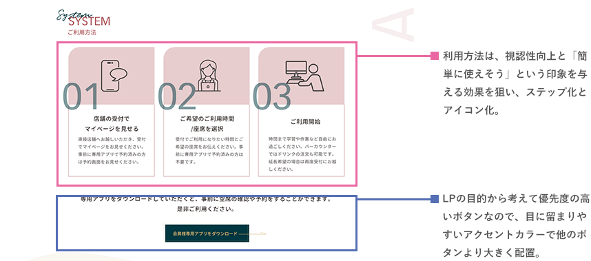 ※色数を抑えて統一感を出すためWebページ内では同じ色の不透明度違いを使用。