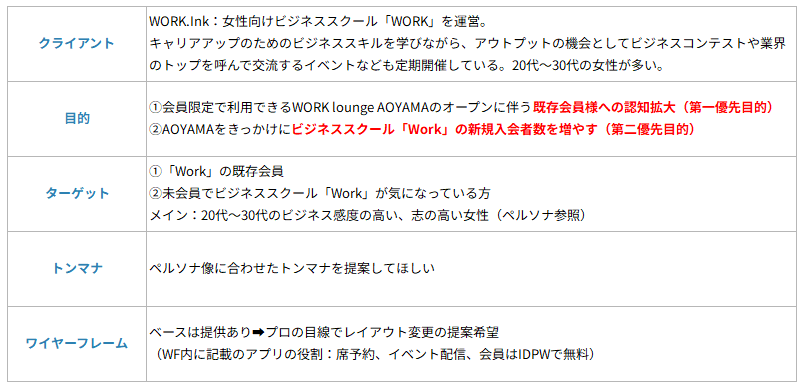 ▼クライアント様情報・要件書(ヒアリング情報をもとに整理)