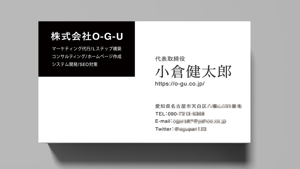 近接・整列を特に意識し、小倉様の雰囲気に合うように”シンプル”、何を主に伝えるか”伝わりやすい”名刺を制作いたしました。