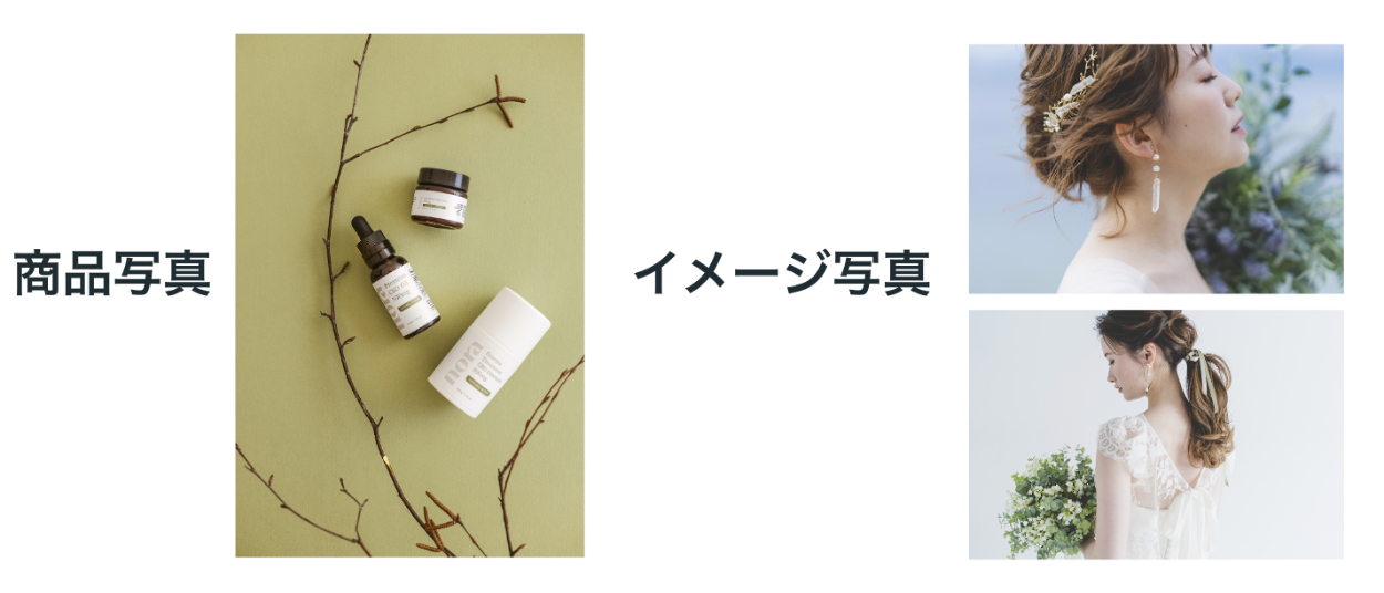 ・Tone&Manner:オーガニックで女性らしさを意識し、イメージ画像の背景色(ライトグレー)とブーケのグリーンを中心にまとめた。