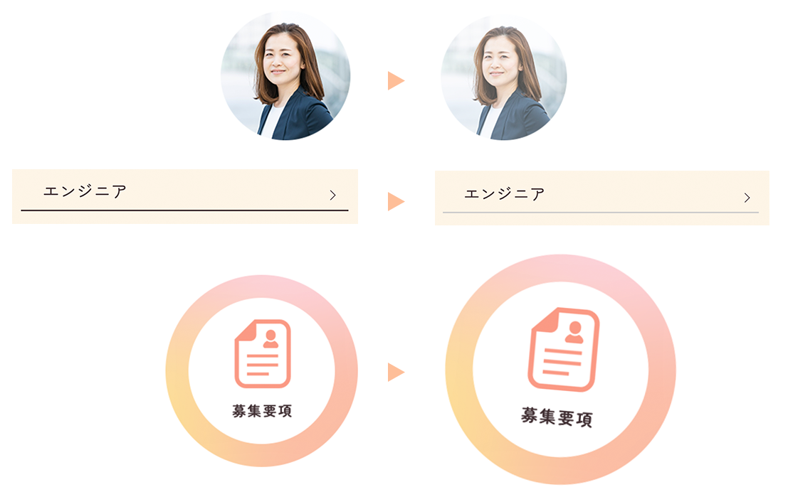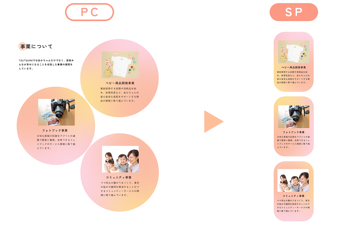 ※SPの事業については、丸だと視認性が悪くなるため、四角形にして角を丸くしました。