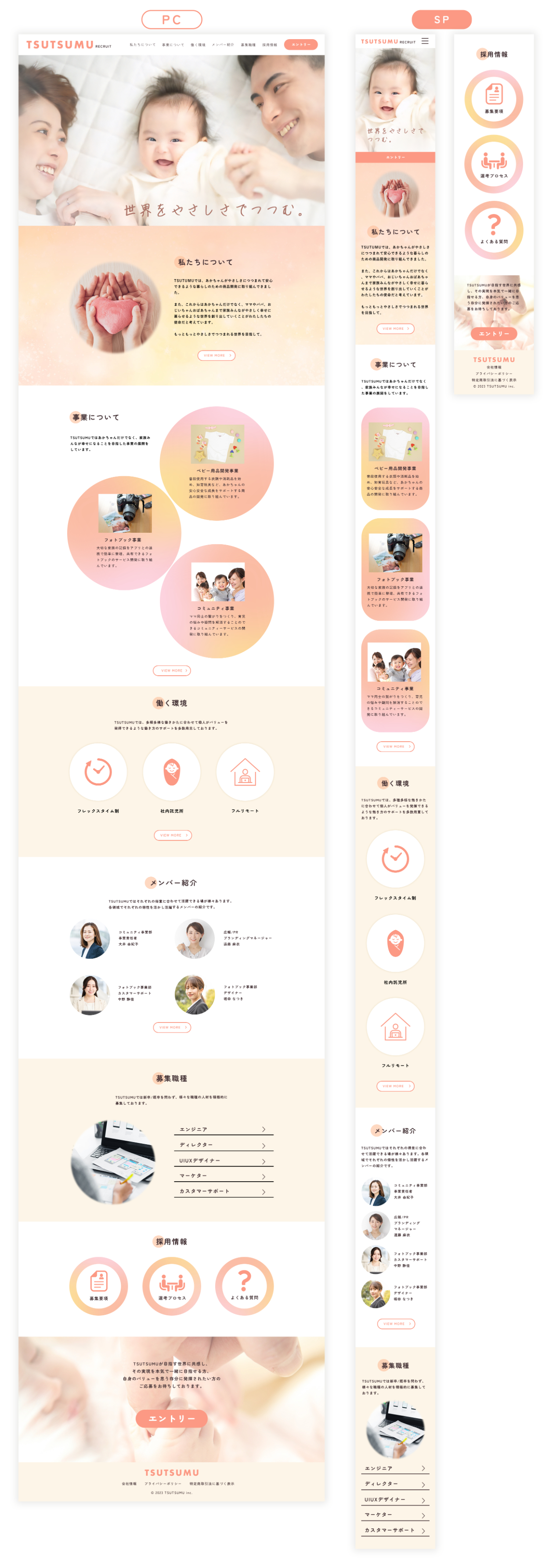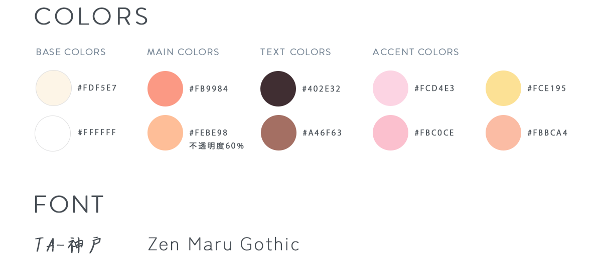メインカラーは、優しくて柔らかさを感じさせるピンクとオレンジの中間色を選び、企業のロゴにも使用しました。