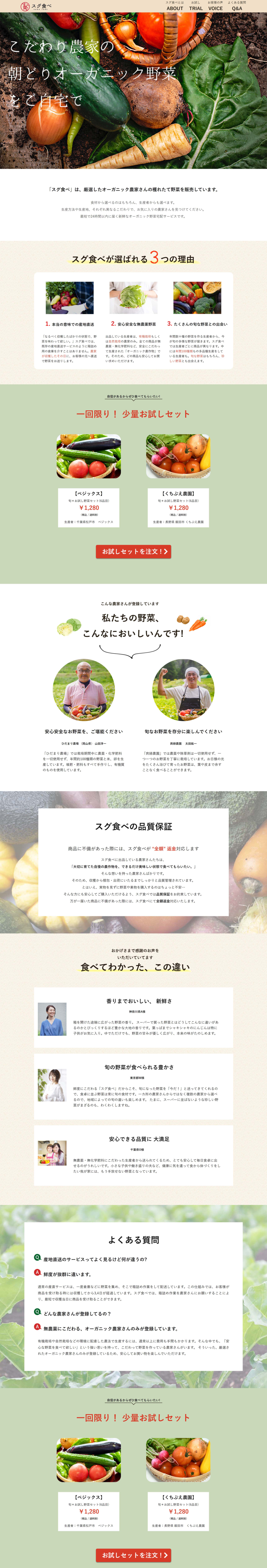 オーガニック野菜のお試しセットの販売を促すランディングページの作成をしてほしい。食へのこだわりが強い層に響くような内容にして、なにはともあれお試し購入へ導きたい。