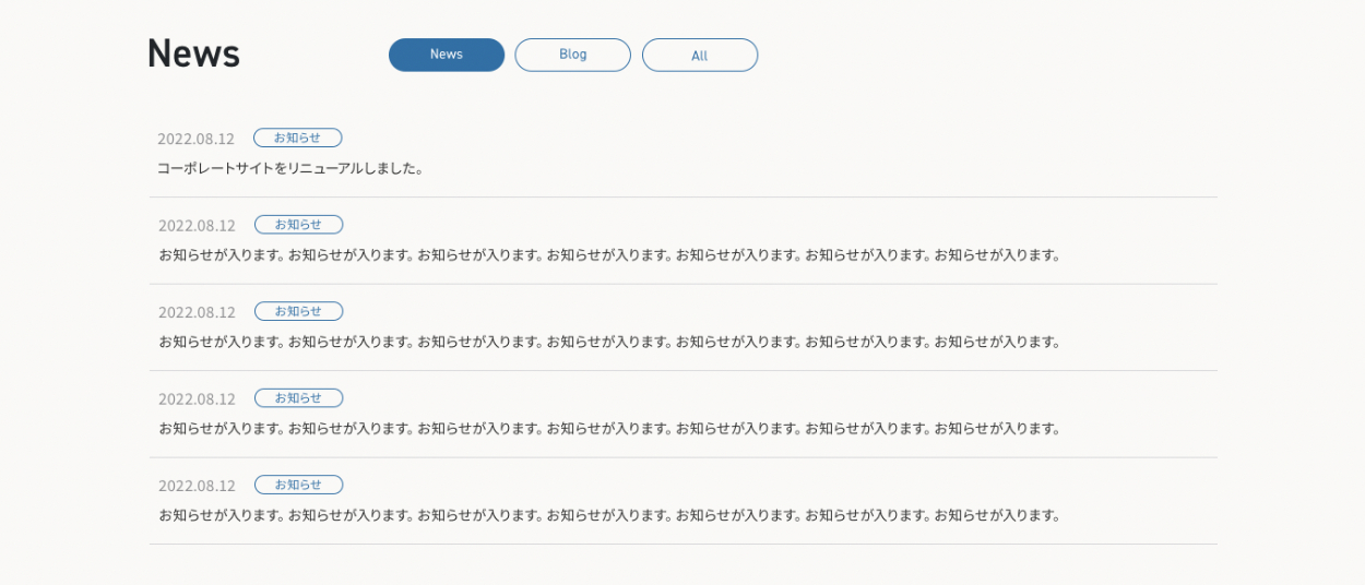 更新頻度が少なく活発なイメージがないと、情報の鮮度が低く現在の会社の姿が見えにくくなってしまいネガティブな印象を持たれてしまう可能性があるため、Newsの他にBlogなどの頻繁に更新できるコンテンツを配置することで、鮮度の高い情報を届けます。