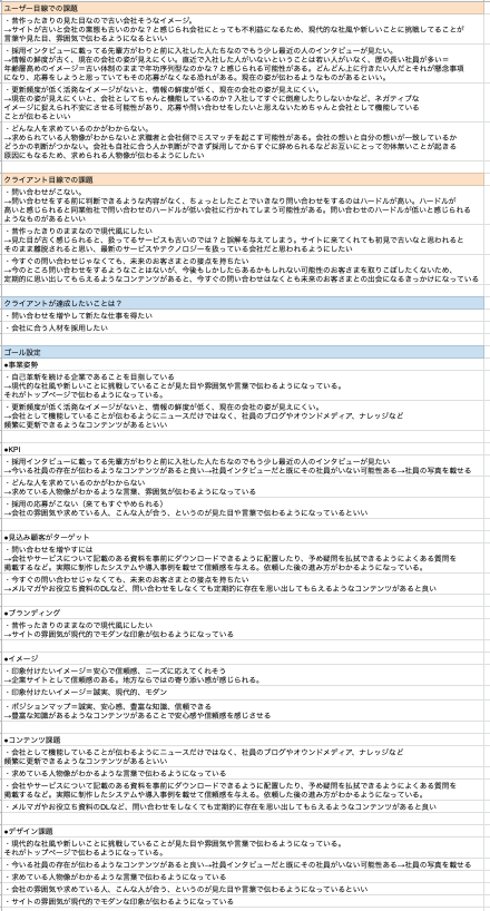 今回の制作目的は「お問い合わせの増加」「採用応募の増加」の2つに設定しました。