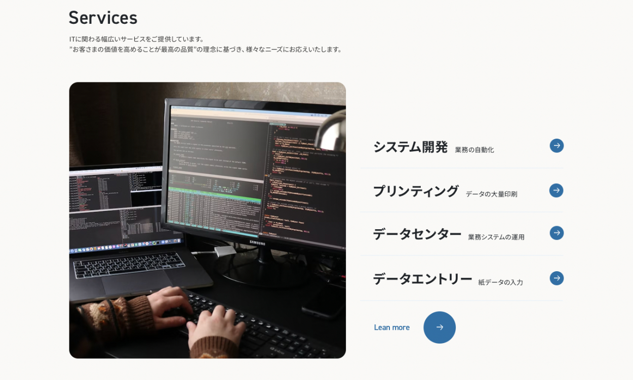 実際にどんなサービスがあるのかを知りたいため、メインで行なっているサービスへの導線を設置します。