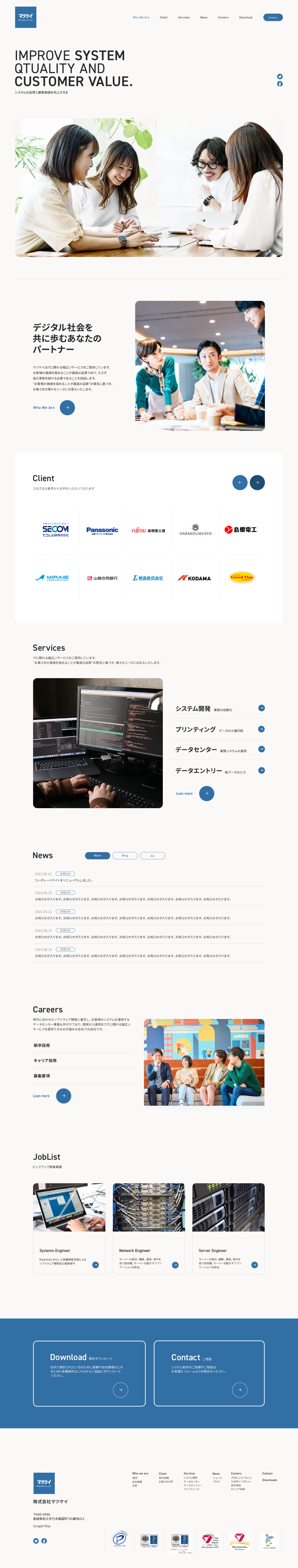 リニューアルしたのは株式会社マツケイという、システム構築や運用管理などを軸としたIT企業のコーポレートサイトです。
