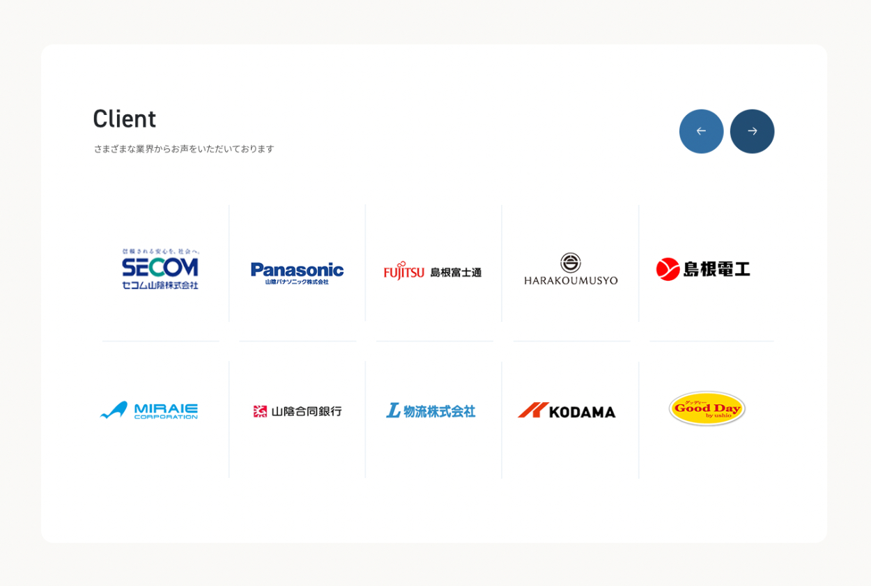 様々なクライアント企業を載せることで信頼感や信憑性を与えます。