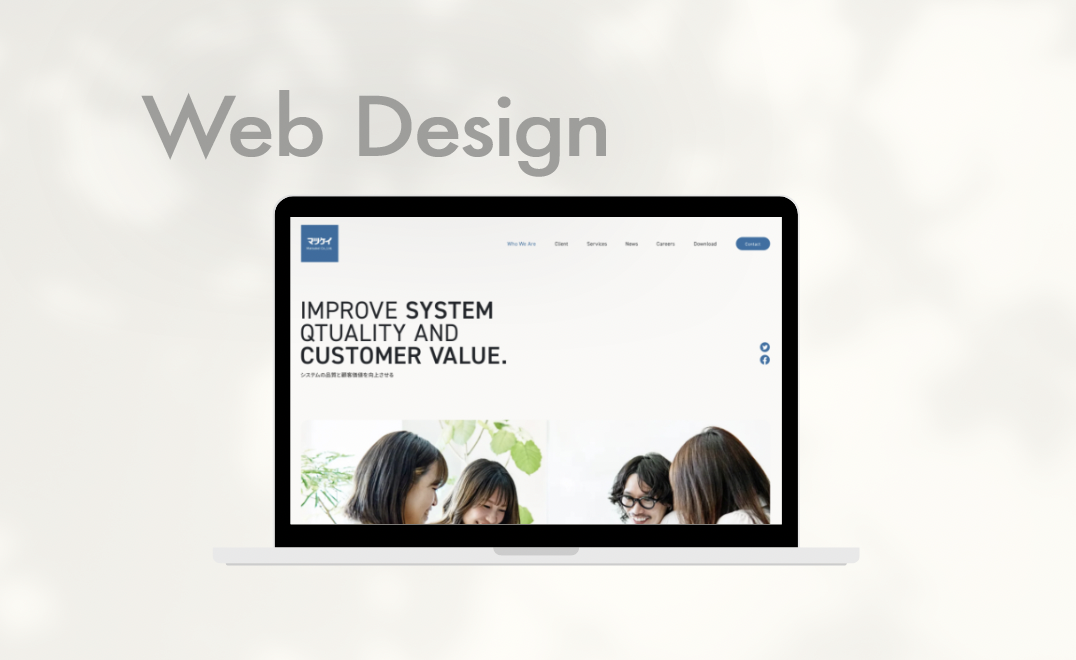 目的のひとつとして採用応募の増加があるため、働いているイメージをポジティブに見せたいのと、業種が伝わるようにPCがあり、在籍する社員や会社の雰囲気が伝わるような写真を配置しました。また、現代的な社風や新しいことにも挑戦している会社のため、あえて写真を見切れさせることでそれらの雰囲気が伝わるようなモダンな印象を与えるようなFVにしました。