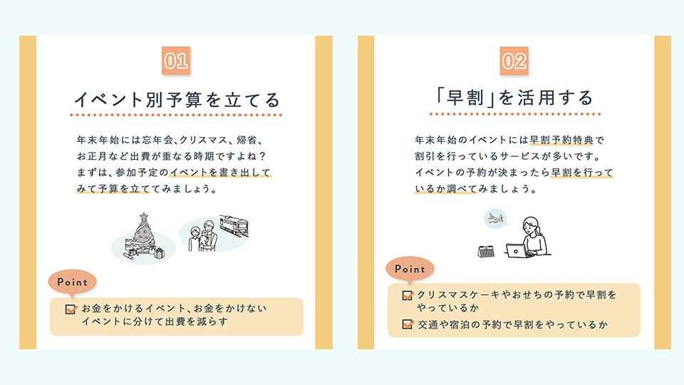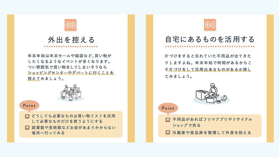 女性向けインターネットスクールの「年末年始に備えた節約術4選」をテーマにしたSNSクリエイティブコンペに応募しました。 【使用ツール:Photoshop】
