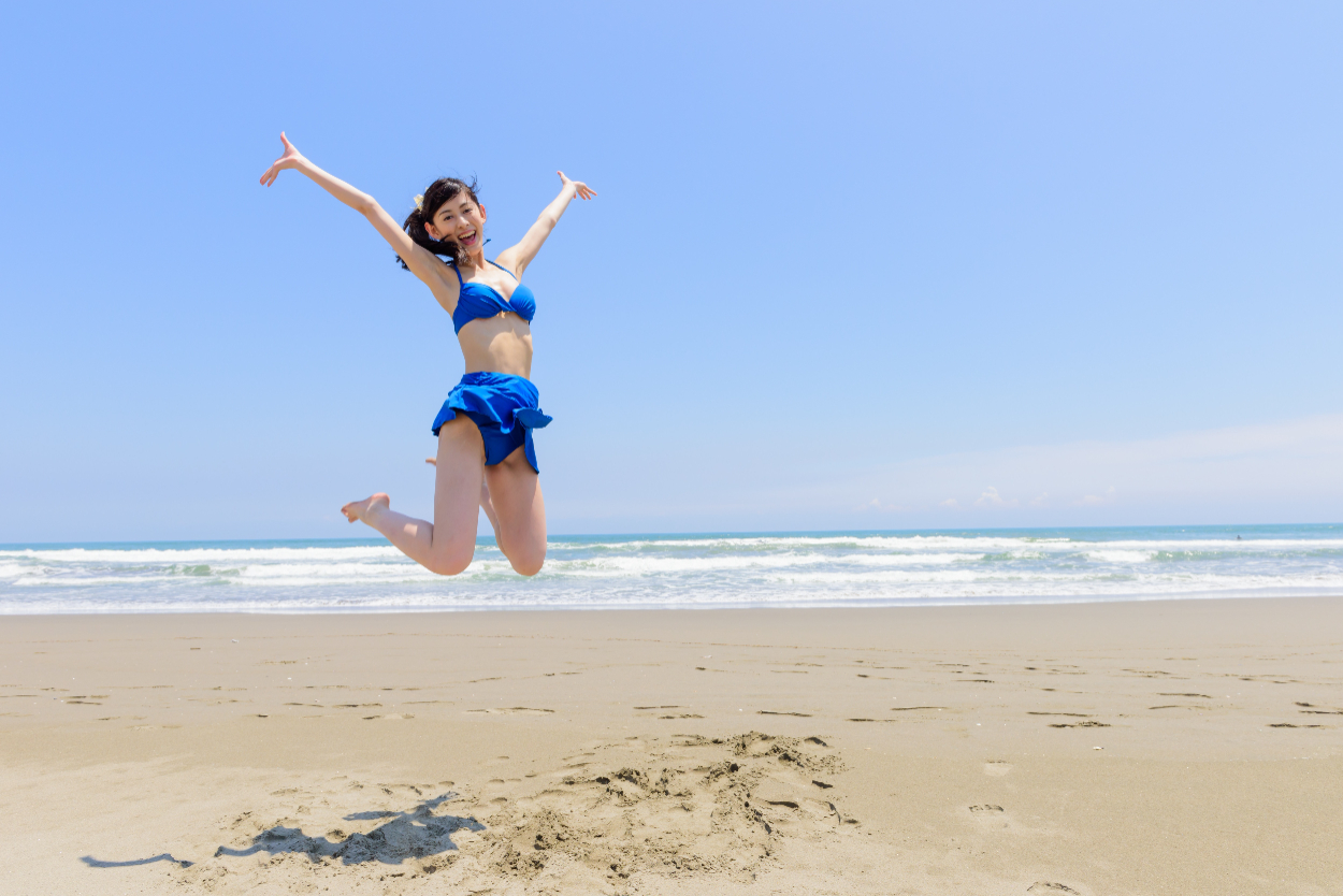 ▪️ペルソナが19歳女子大生ということで、海ではしゃいでいる様子の水着女性の写真を選
