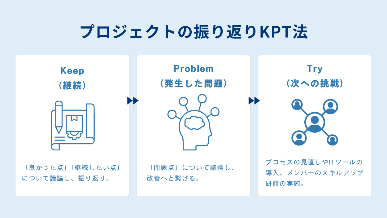 ④ 図解バナー「プロジェクトの振り返りKPT法」