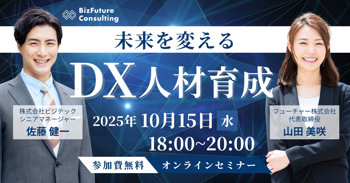 背景の抽象的なテック感のあるデザインとアイコンを組み合わせ、「未来志向 × ITコンサル」のブランド感を表現。
