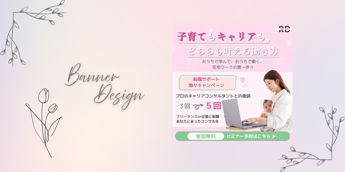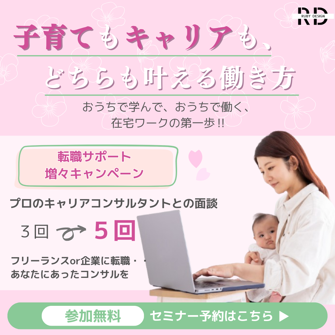 キャッチコピーの「子育てもキャリアも、どちらも叶える働き方」は強めな印象を残したく明朝体を使用しています。