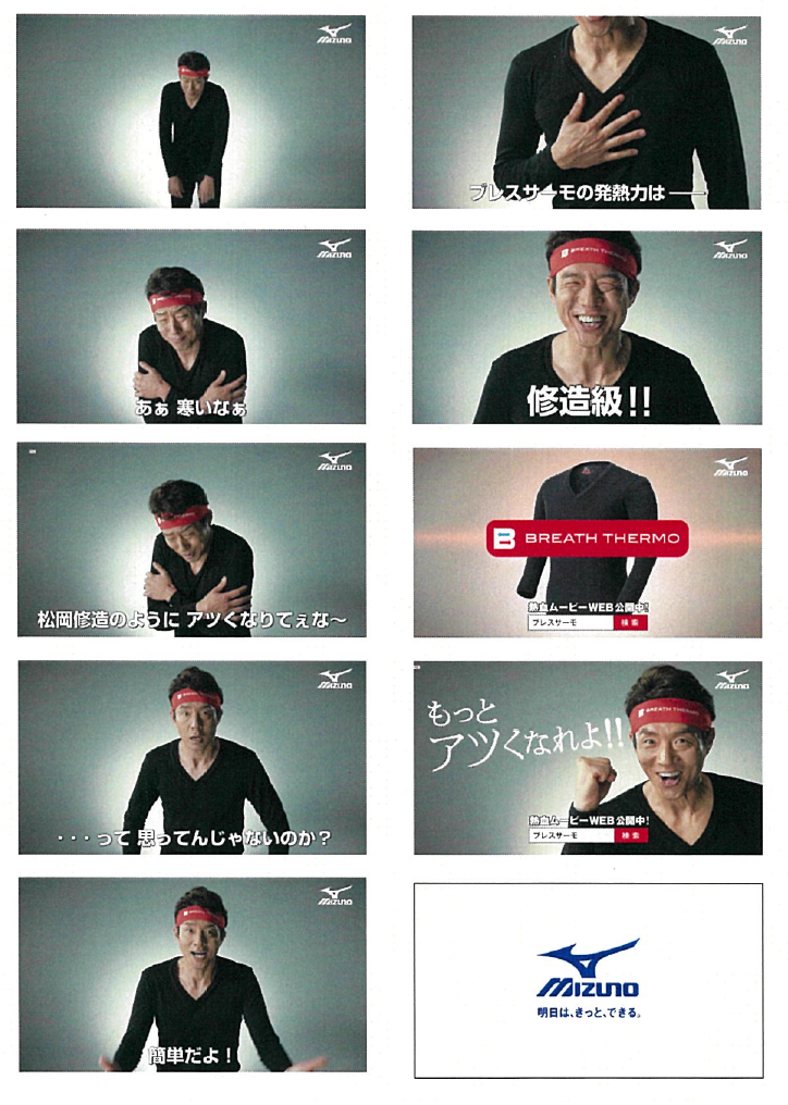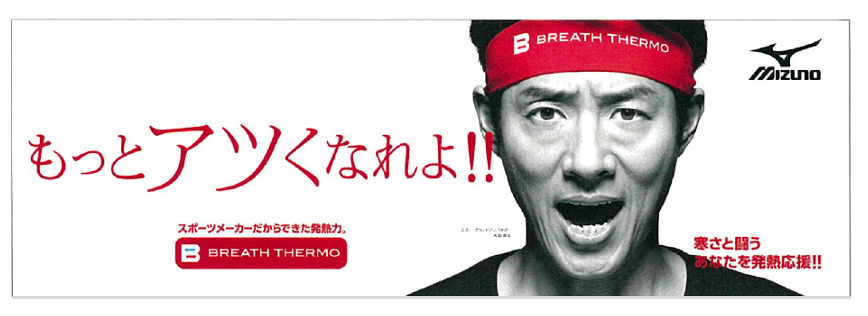 松岡修造さんを起用し、 「ミズノのブレスサーモ=1番ホットな温かインナー」を訴求。