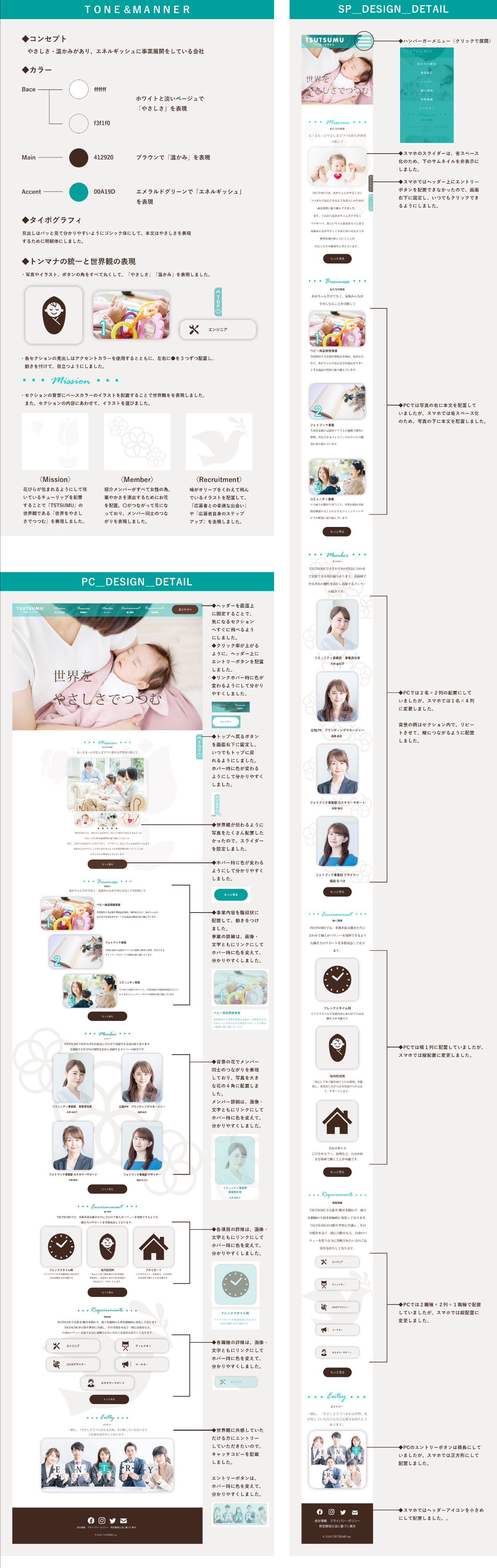 WEBデザインスクールシーライクスのMULTI CREATOR COURSE の課題で、ベビー用品をメインとし、コミュニティ事業や、フォトブック事業などを展開すTSUTSUMU株式会社のリクルートサイトを制作しました。