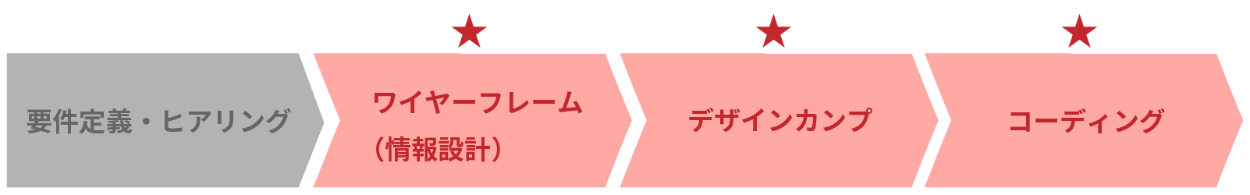 「採用の流れ」など、画像読み込みでも表現できる部分でも、HTML・CSSを使用して、デザインした作成物を表現できるようにしました。