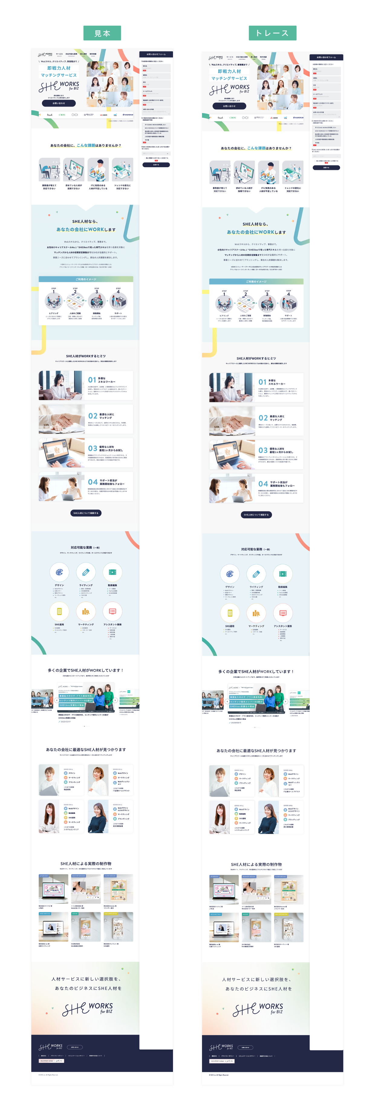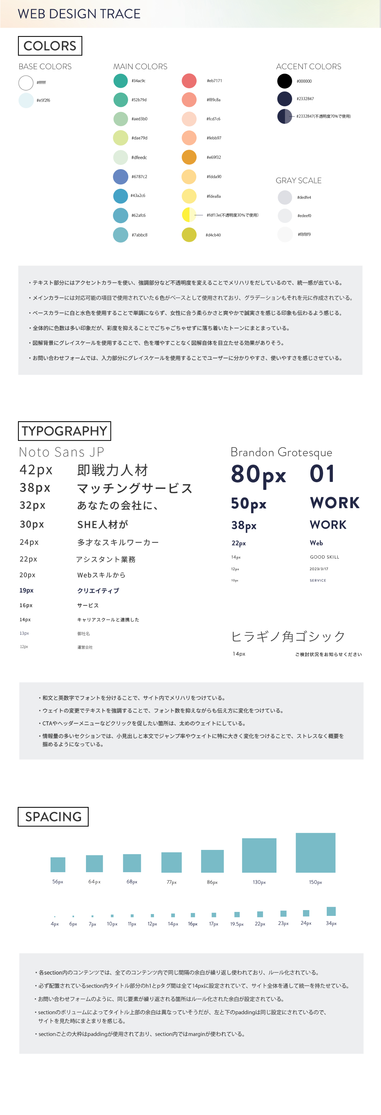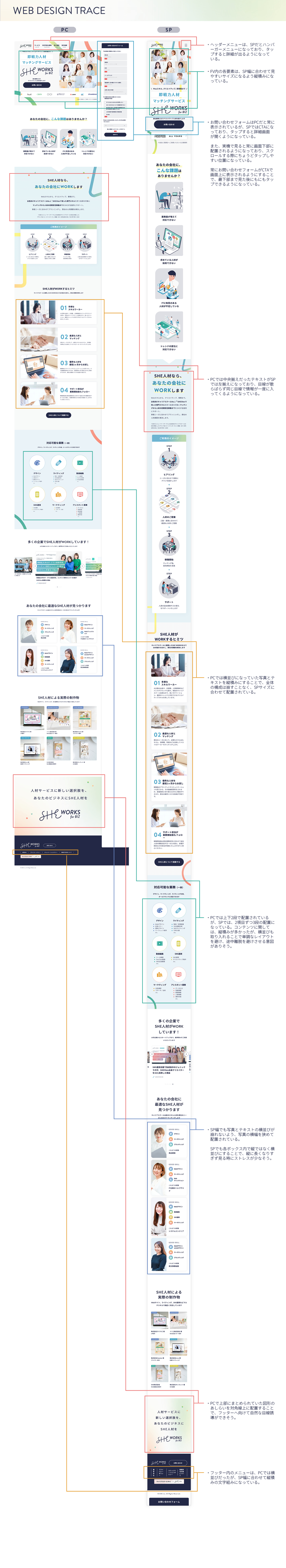 SHElikes PROデザイナーの課題として実施。WebサイトSHE WORKS for BIZのトレースを検証ツールを使用しながら行い、分析シート、スタイルガイドの作成を行いました。【制作期間:2週間/制作時間:56時間/使用ツール:Photoshop】