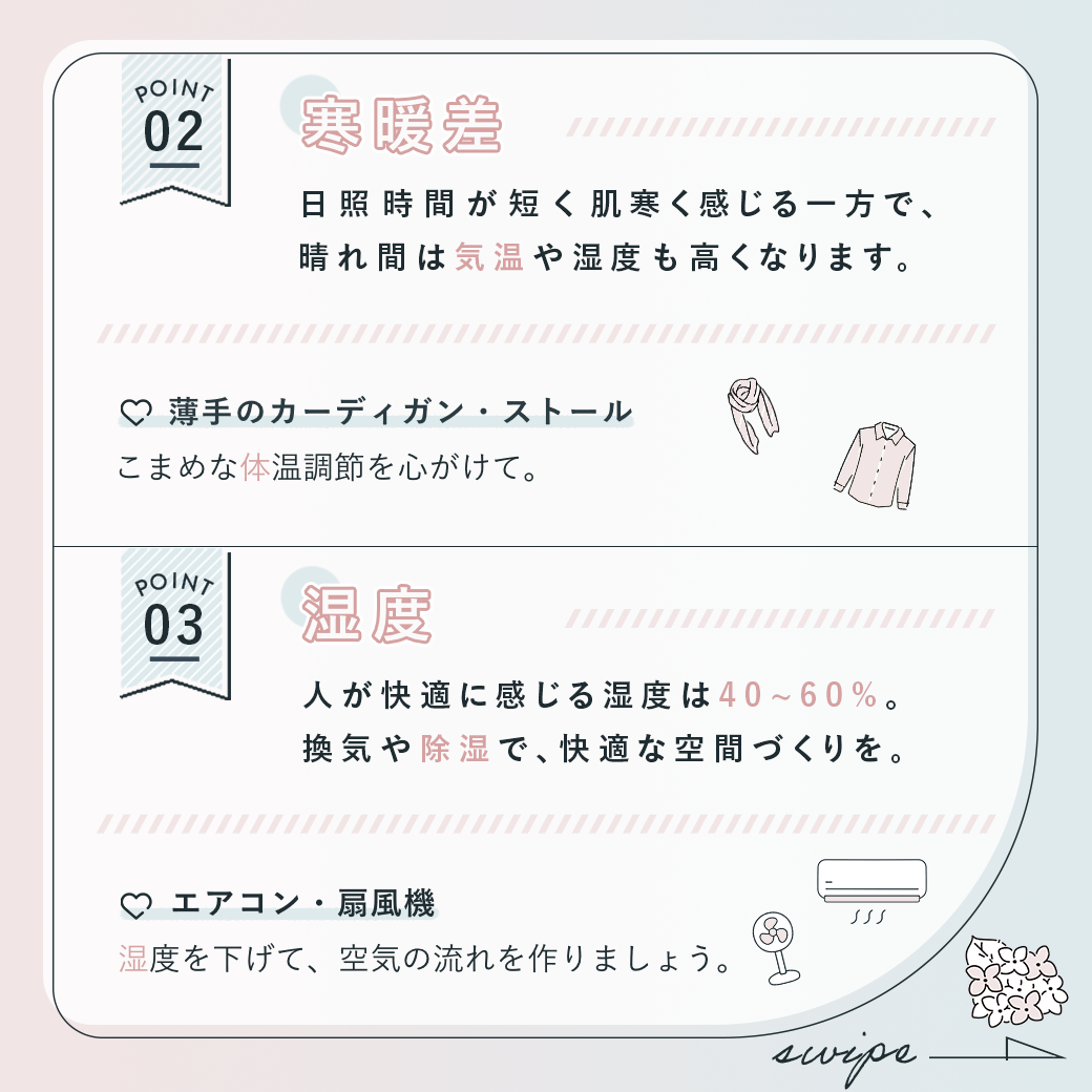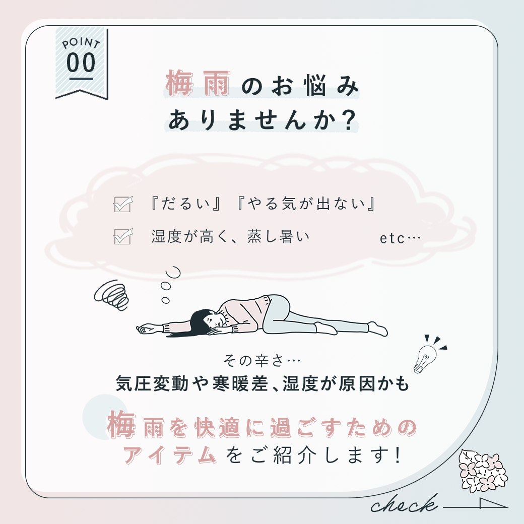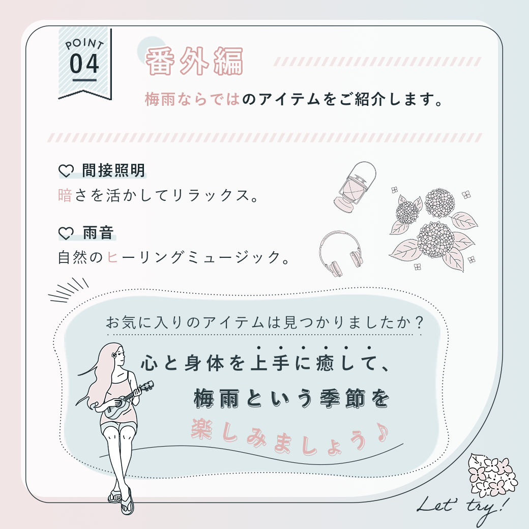 ・『梅雨はアイテム選びで快適(癒し)になる』ということが伝わるように制作しました。