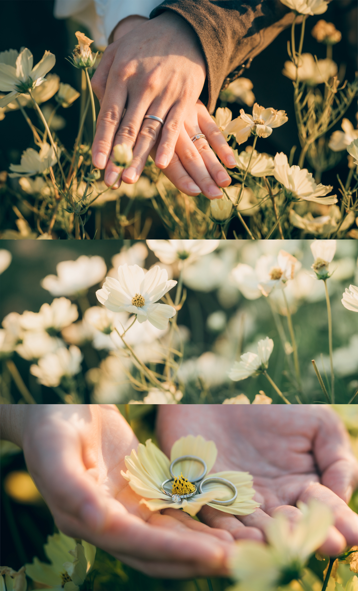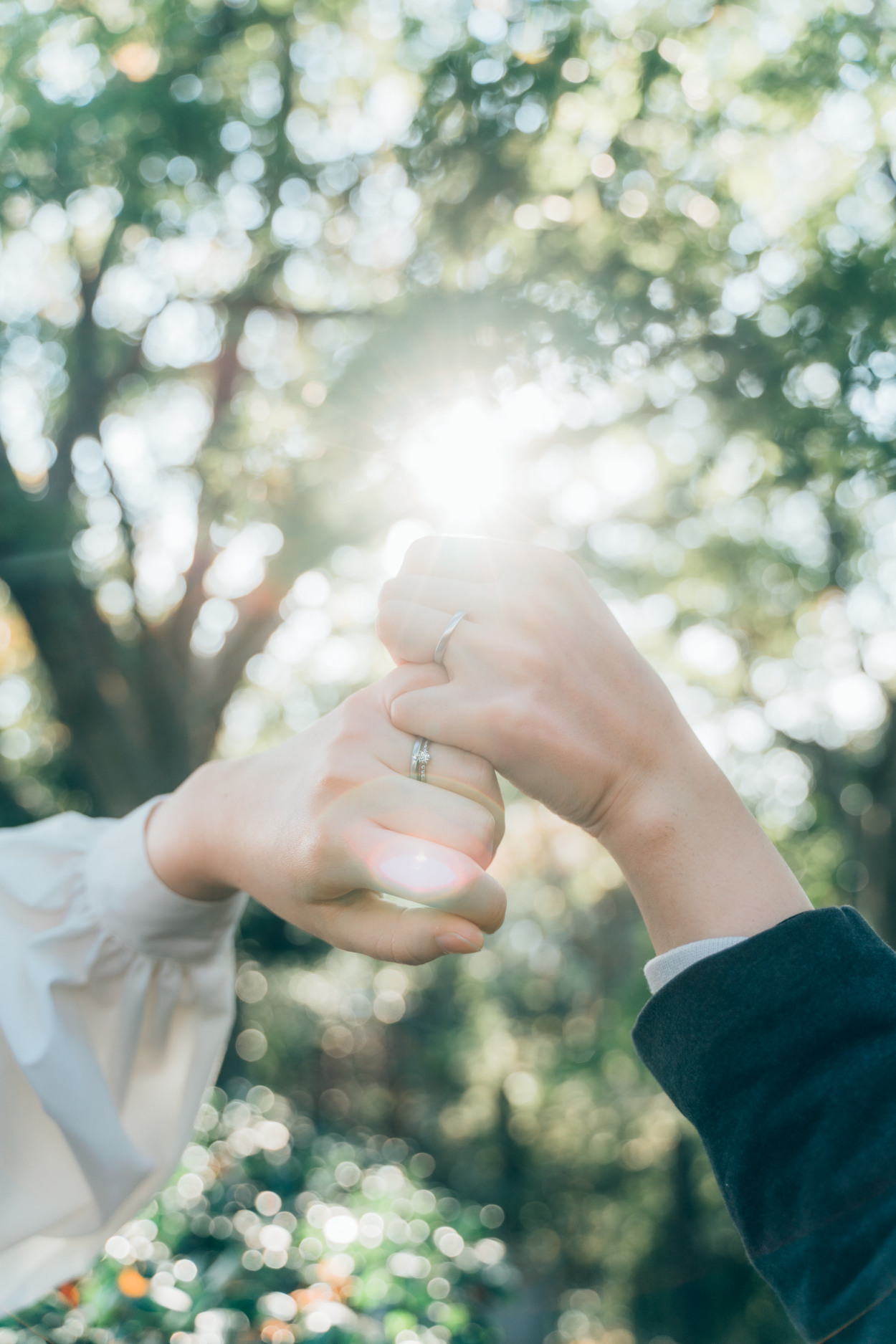 2人の手と手の先に明るい未来がありますようにと願いをこめて撮影しました。