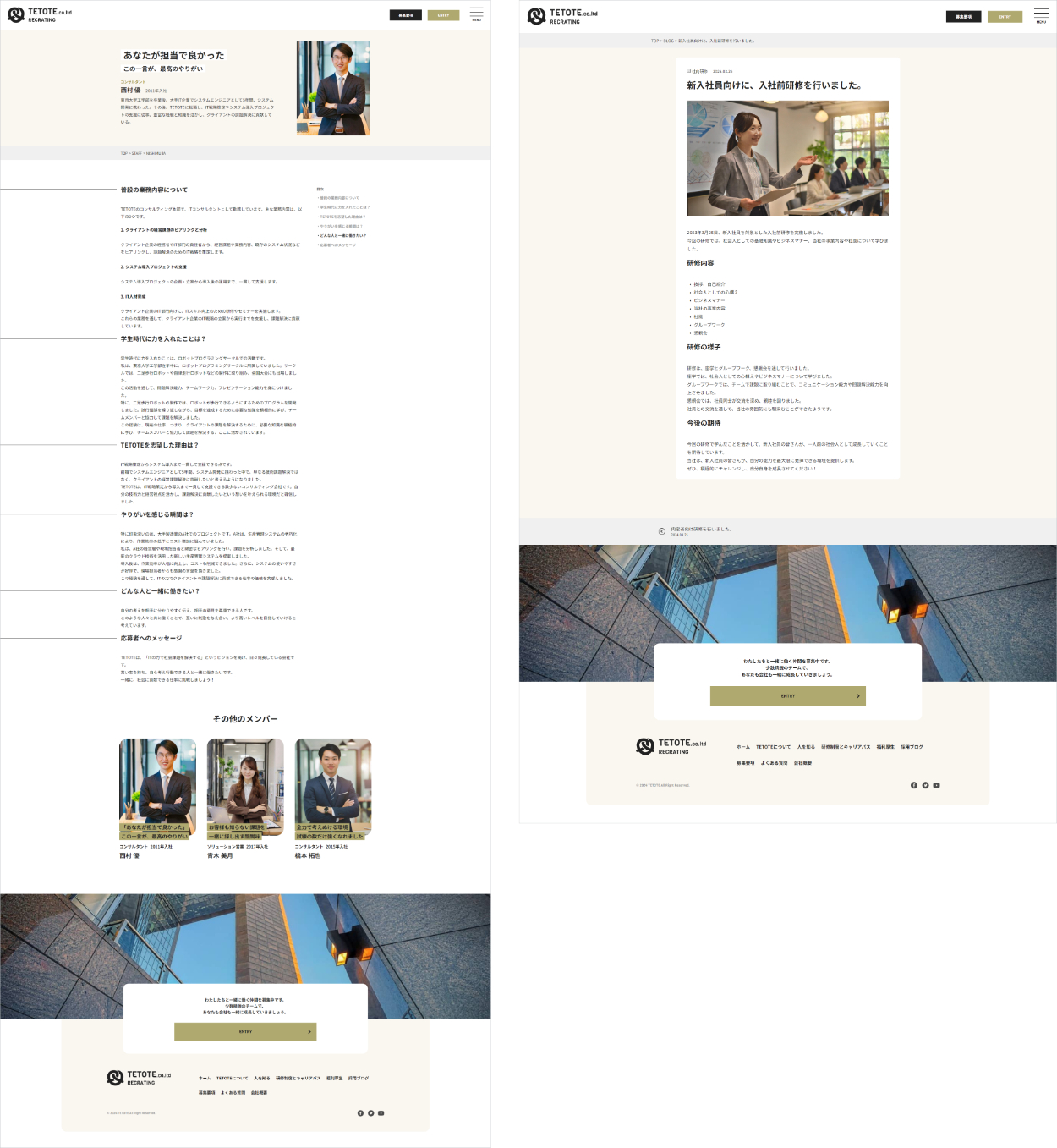 「名前」をそれぞれのスタッフにカスタムフィールドで持たせて、表示させています。 - 採用ブログではPHPで新しい順に4件ブログ記事が表示されます。