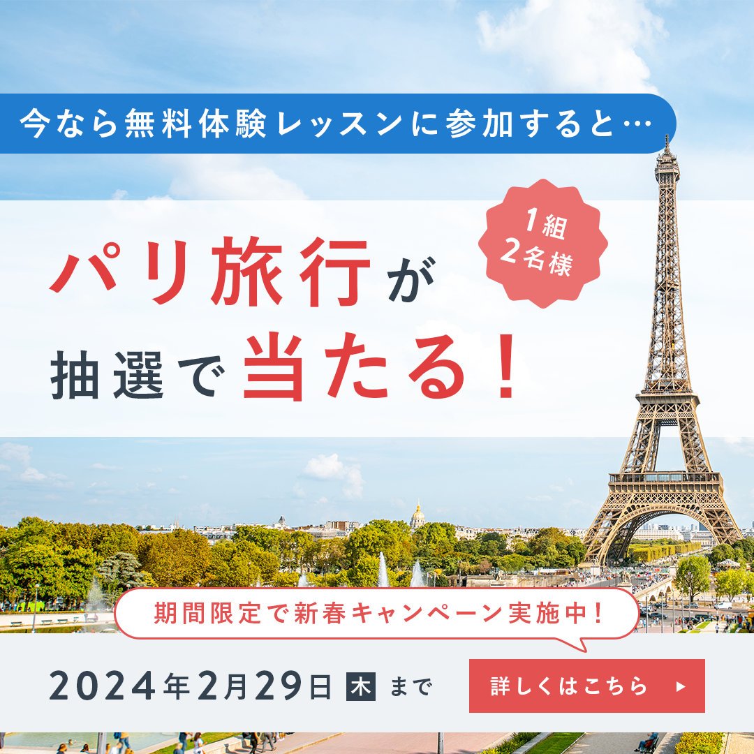- 「パリ旅行」と「当たる」の文字サイズを大きく、赤色にすることで一目で情報が伝わるようにしました。