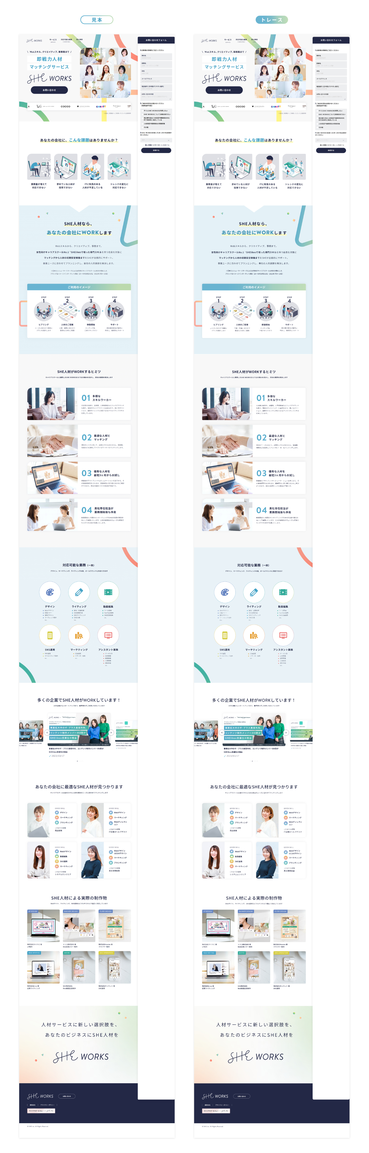 SHE 株式会社が提供する「SHE WORKS」のLPをトレースしました。