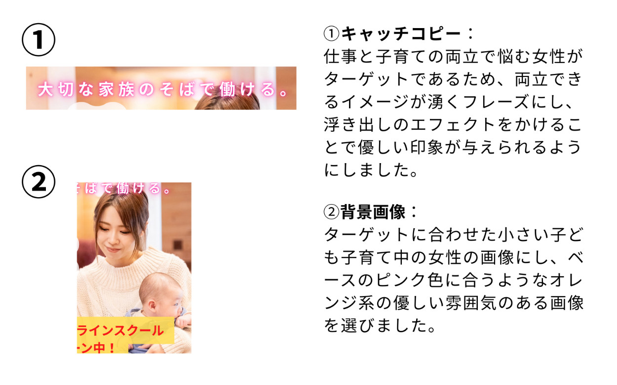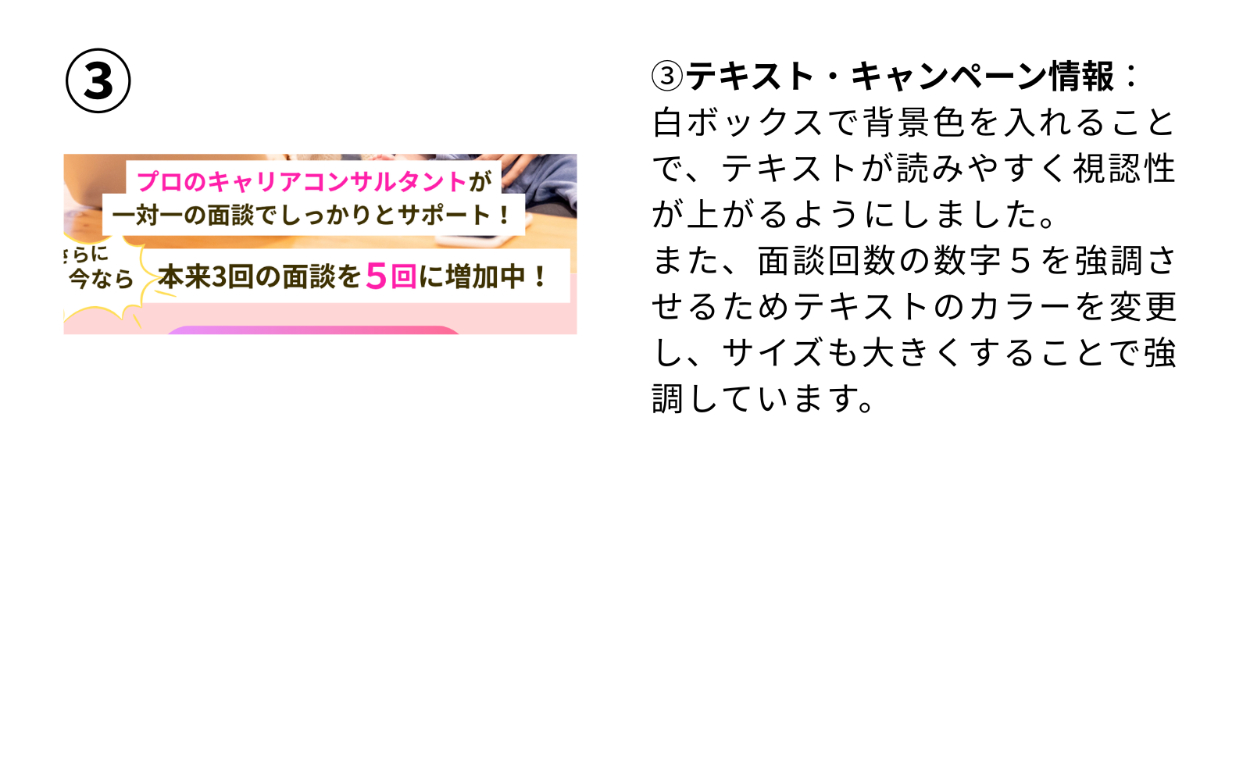 ご要望:キャンペーン情報を入れてほしい(プロのキャリアコンサルタントとの面談サポートを通常3回のところ5回に増やしていること)、ベースカラーはピンク系の色で女性らしさとフレッシュな雰囲気にしてほしい