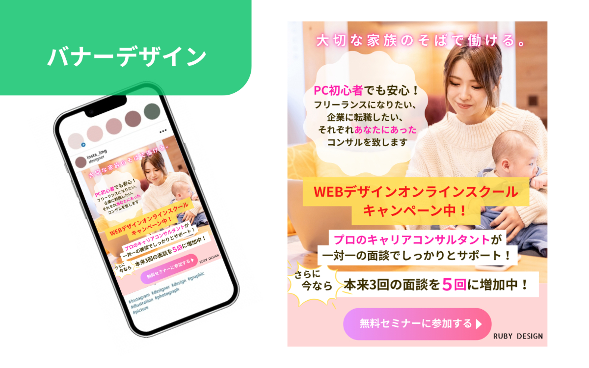 バナー│WEBデザインオンラインスクール無料セミナー参加誘導(架空案件)