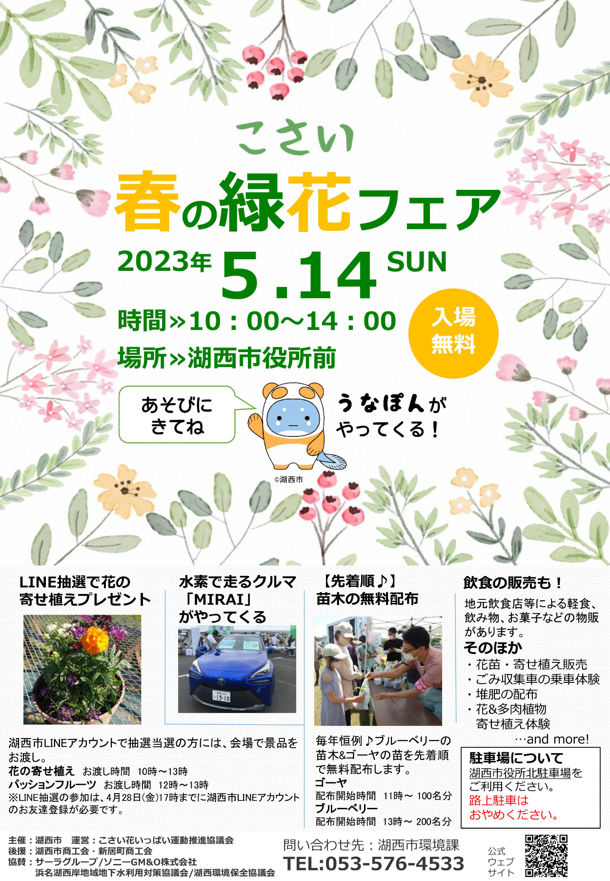市役所主催の緑花フェアのチラシを作成。次の担当でも使いまわしができるよう、パワーポイントとCanvaを使用した。