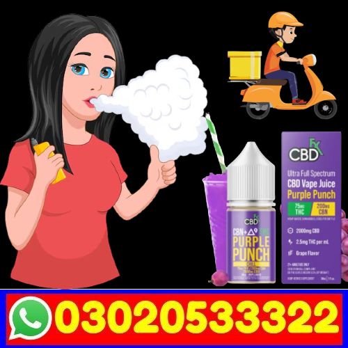 THC Vape Juice Purple Punch In Pakistan | 0302-0533322 | Buy Now Product Overview: Flavor Profile: Purple Punch offers a sweet and fruity flavor with hints of grape and berry, making it a delightful choice for vapers who enjoy flavorful options. Effects: This vape juice is designed to provide calming effects that can help alleviate stress and promote relaxation. Benefits: Relaxation: The calming properties of Purple Punch are ideal for unwinding after a long day or managing stress and anxiety. Flavorful Experience: The sweet and fruity flavor enhances the enjoyment of vaping, making it a pleasurable experience. Convenient Use: Vaping allows for quick absorption of THC into the bloodstream, providing fast relief compared to other consumption methods. Versatile Application: Suitable for both recreational use and therapeutic relief, catering to a wide range of users.