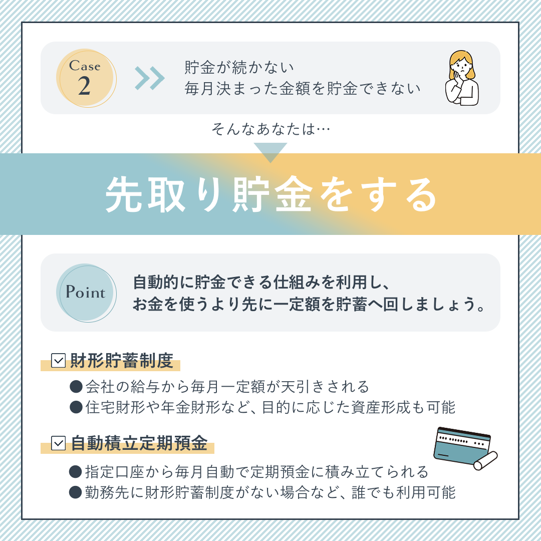 いくつかある貯金方法を、どんな人に合うかを含めて紹介して欲しい