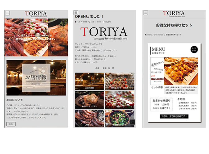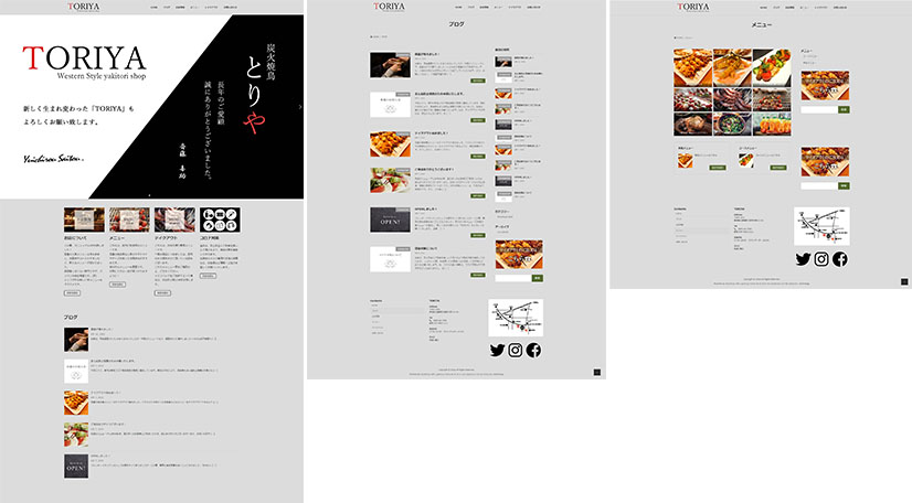 架空の焼き鳥屋さんのサイトを作成しました。 イタリアンシェフの経歴を持つ息子が、実家の焼き鳥屋を継ぐことになったという設定です。 シンプルでスタイリッシュなデザインと食欲をそそる画像にこだわり、ターゲットがスマホユーザーなのでレスポンシブWebデザインに気を付けました。
