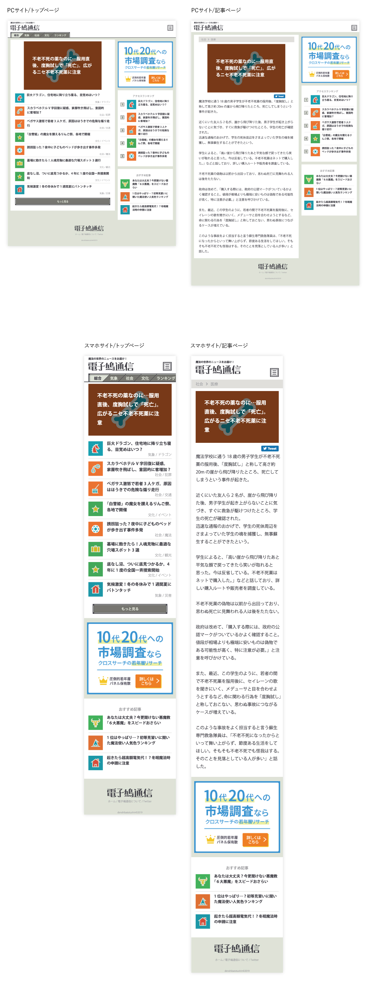 ファンタジーな異世界のニュースサイトをテーマに作ったエンタメサイト。 実際のニュースサイトのカテゴリの分け方や文章を参考にし、リアリティあるサイトにした。