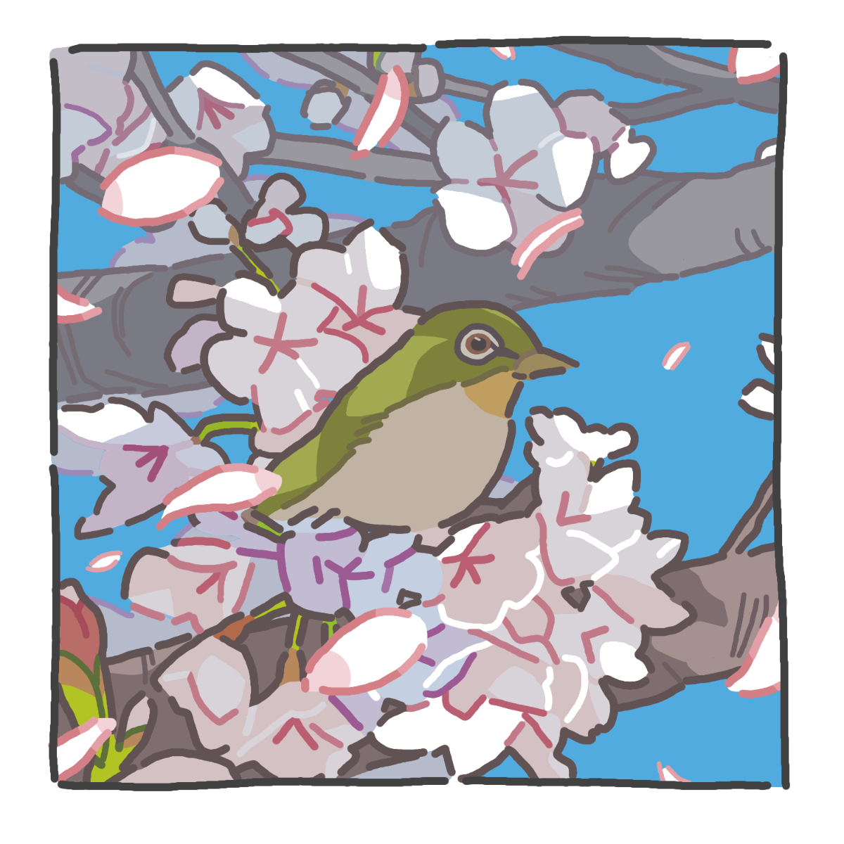 ---------------------------------------------------------------------------------- たまたま桜の中にめじろを見つけたので