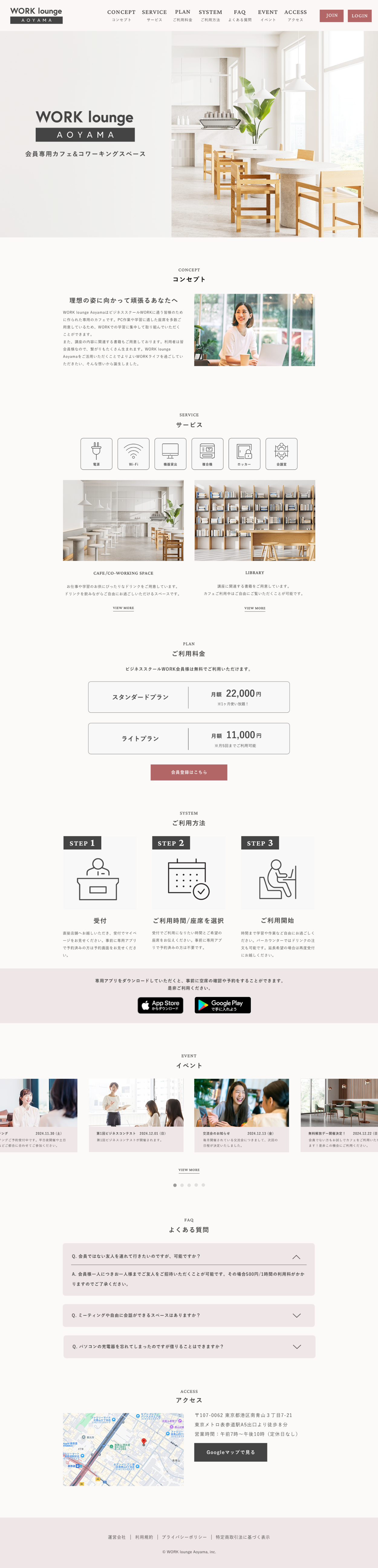会員様限定のカフェ&コワーキングスペースをオープンすることになったため、WORK lounge Aoyamaについて知ってもらいたい。