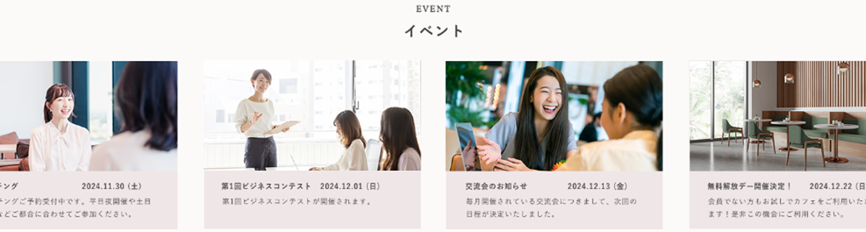 女性向けのビジネススクールを展開している。 会員は20~30代の女性が多く、 キャリアアップのためにビジネススキルを学び、 さらにそのアウトプットの場として定期的にビジネスコンテストなどのイベントも開催されている。