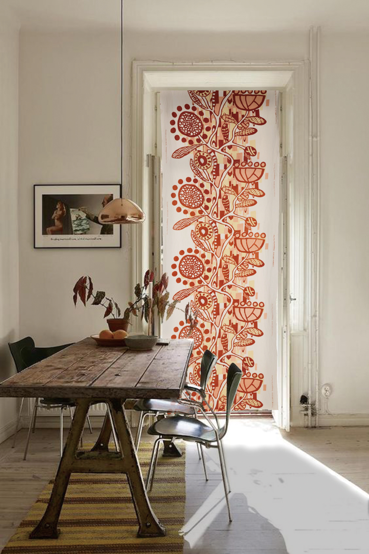 このテキスタイルの使い方の提案として、窓にカーテンのように垂らす使い方を提案しています。街中に住んでいても、このテキスタイルがあるだけで自然のエネルギーを感じ元気になれる。生命力溢れるテキスタイルが完成しました。