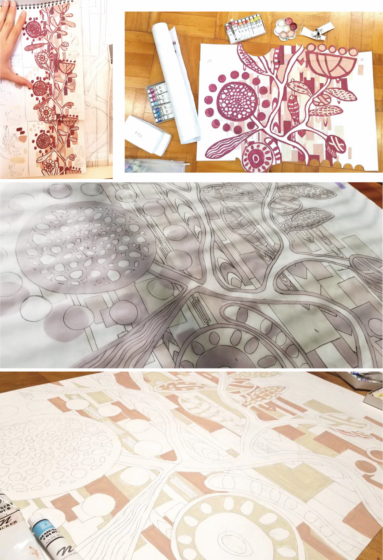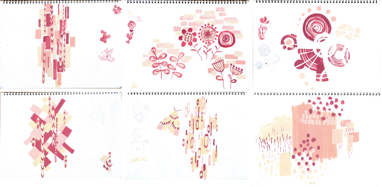 異なるスケッチを組み合わせ、5Mのパターンデザインになった時のリズム感のバランスを計算しながら手作業でパターン化していきます。