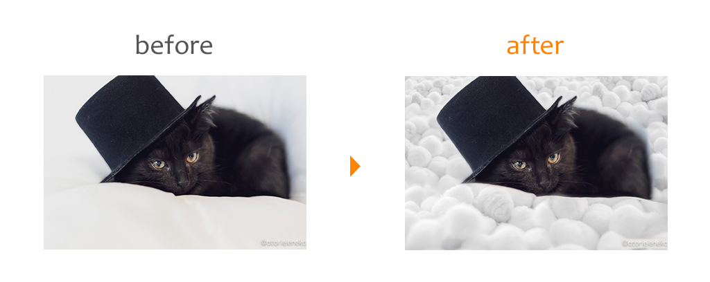 ”綿”を再利用した商品(猫のおもちゃ)に付けるカードを作成